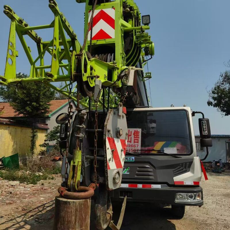 Zoomlion ZJL5332JQZ25E प्रयुक्त ट्रक क्रेन, 25 टन नामित भार, 32800kg अधिकतम अधिकृत कुल द्रव्यमान.उच्च कार्यस्थल दृश्यता के लिए ब्रांड ग्रीन बाहरी.